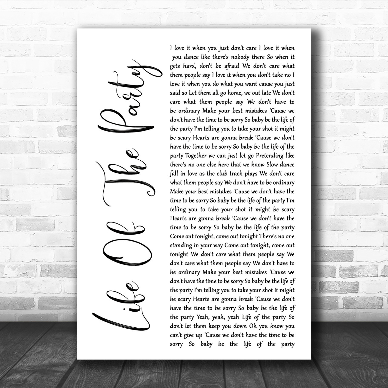 Shawn Mendes Life Of The Party White Script Song Lyric Music Wall Art Print Song Lyric Designs